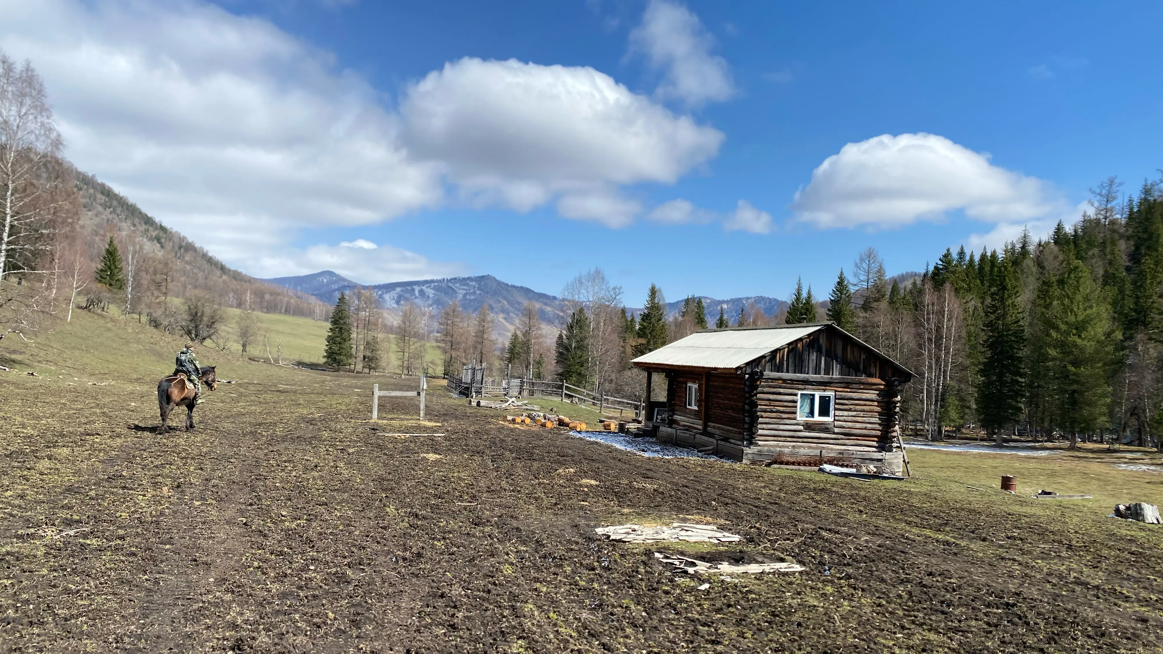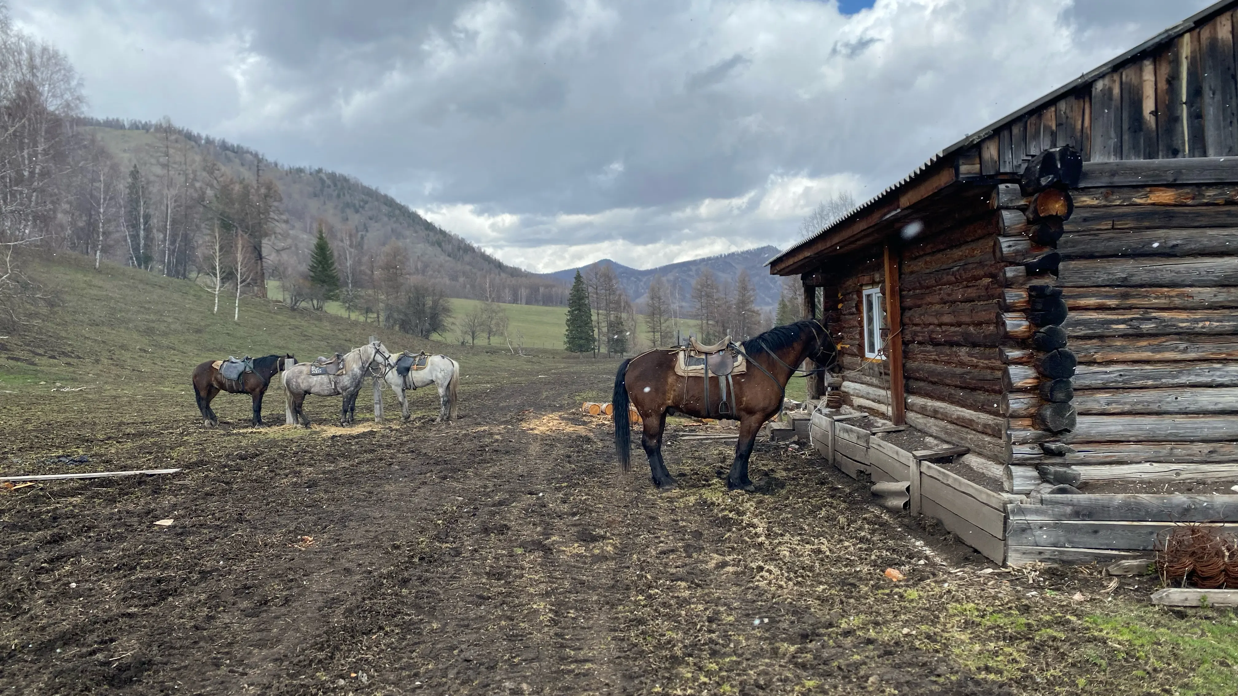 Фото на лошадях повыше видно? Всё нормально прогрузилось? Не хочу, чтобы вы читали хотя бы без маленького визуального погружения. Чтобы позволить себе такое удовольствие, надо долететь из Питера (в моём случае) до Новокузнецка, потом поколесить ~500 километров до подножья горного Алтая, и вот мы, наконец, пересели на лошадей и поехали в горы. Как же быстро сменилась атмосфера! Привычный салон авто, раз! — и ты уже на лошади, впереди горы… Совсем немного пути — и вот мы в охотничьей избушке. В ней и жили эту неделю. Умывались в реке, из неё же и пили, а временами она замерзала — природа напоминала нам, что мы здесь простые хрупкие гости. Я не жалуюсь. Это так, для проформы, — констатация.