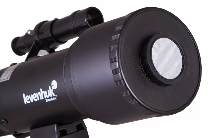 Портативный рефрактор снабжен специальным защитным солнечным фильтром. В хорошую погоду в телескоп можно вести наблюдения за Солнцем и своими глазами увидеть солнечные пятна. Будьте особенно внимательны при наблюдении за солнечной активностью и всегда проверяйте, надежно ли закреплен солнечный фильтр на трубе телескопа. Фильтр должен быть плотно надет на оптическую трубу и полностью перекрывать объектив. При наблюдении Солнца оптический искатель лучше закрыть крышкой или даже снять его, чтобы случайно не навредить зрению.