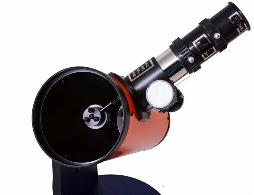 Levenhuk LabZZ D1 – это рефлектор Ньютона с просветленной оптикой. Он передает четкое и ясное изображение, не искаженное хроматизмом и внутренними бликами. Наилучшую картинку можно получить вдали от городской засветки – так получится рассмотреть больше деталей. Оптическая труба установлена на деревянную монтировку Добсона. Ее можно вращать на 360°, перемещать по высоте или азимуту. Никаких навыков управления этот тип монтировки не требует – юный астроном научится работать с телескопом за несколько минут.