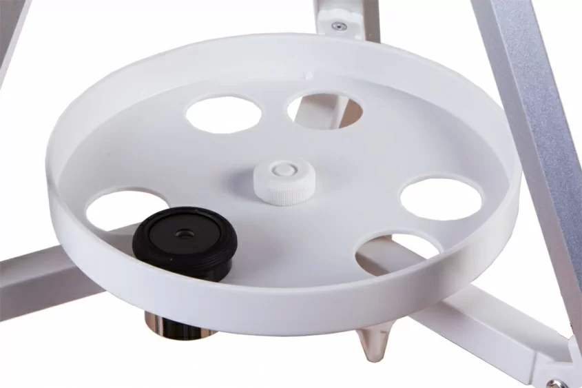 Управлять телескопом сможет даже ребенок. Оптическая труба свободно перемещается в четырех направлениях – вверх, вниз, влево и вправо. Азимутальная монтировка – одна из самых простых в освоении и не требует никаких особых умений. Телескоп удерживает прочная алюминиевая тренога. Ее можно устанавливать даже на неровной поверхности – высота каждой ножки регулируется отдельно. Есть лоток для аксессуаров.