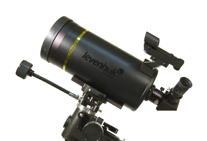 Линзовые поверхности телескопа имеют просветляющее покрытие, которое обеспечивает максимальное светопропускание, а отражающие – защитный слой, увеличивающий срок их службы. Алюминиевая труба установлена на экваториальную монтировку, оснащенную ручками тонких движений и допускающую установку электропривода на обе оси и искателя полюса (приобретаются дополнительно). Такая монтировка имеет специальные координатные круги, с помощью которых, после несложной настройки, можно находить объекты по их экваториальным небесным координатам, а также сопровождать суточное движение объекта вращением только одной ручки. Тренога регулируется по высоте и имеет удобную полочку для принадлежностей, искатель с красной точкой позволит быстро навести телескоп на нужный участок неба.