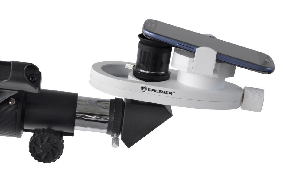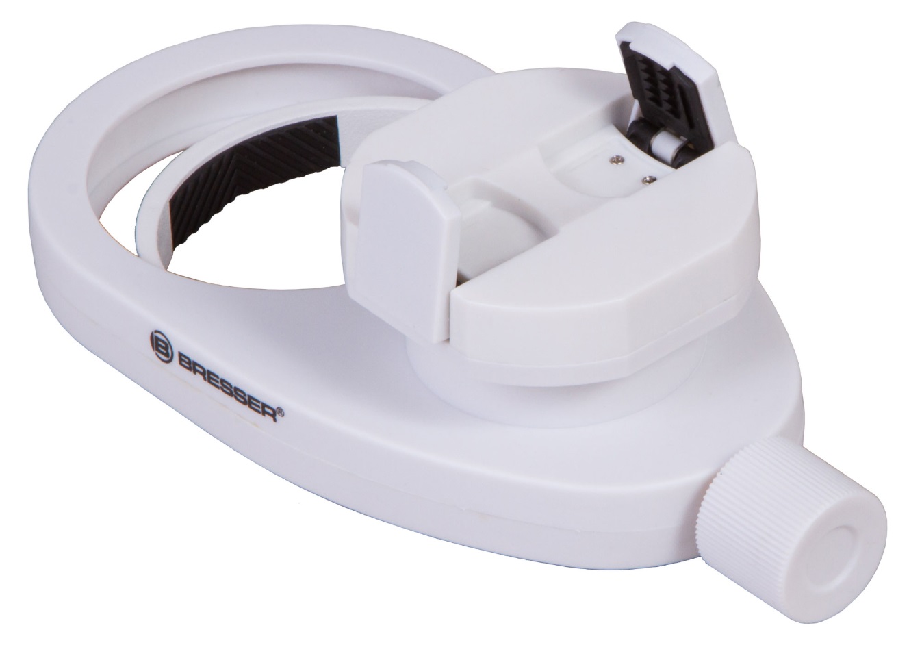 Адаптер для смартфона Bresser представляет собой аксессуар, предназначенный для крепления мобильного телефона к зрительной трубе, телескопу или микроскопу. Он обеспечивает расположение камеры смартфона непосредственно над окуляром, что позволяет использовать устройство для видео- и фотосъёмки наблюдаемых объектов. Применение адаптера с телескопом даёт возможность заниматься астрофотографией, с микроскопом — фиксировать изображения из микромира, а со зрительной трубой — записывать окружающие ландшафты и удалённые объекты.