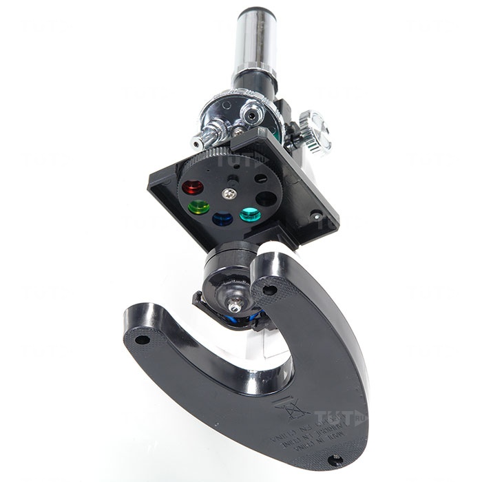 Удобная система освещения — зеркало и лампочка (на обратной стороне зеркала, включается автоматически при перевороте зеркала). Четыре фильтра и диафрагмы (кольцо на предметном столике) сделают освещение исследуемого объекта наиболее выигрышным для наблюдений.