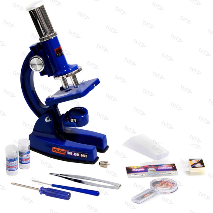 Отличный подарок для ребёнка, желающего погрузиться в увлекательный мир микробиологии. Микроскоп располагает осветителем с двойным действием – когда он повёрнут зеркалом вверх, освещение происходит путём солнечного света. Один поворот, и вот у вас уже освещение от лампы, встроенной в другую сторону осветителя (батарейки в комплект не входят). Это может быть полезно при пасмурной погоде или при отсутствии достаточного освещения в комнате. В комплекте к микроскопу идёт одно предметное стекло с уже заранее подготовленным препаратом, и целых 12 предметных стёкол для приготовления своих микропрепаратов, с чистыми стикерами для маркировки. Прямо как в настоящей лаборатории!