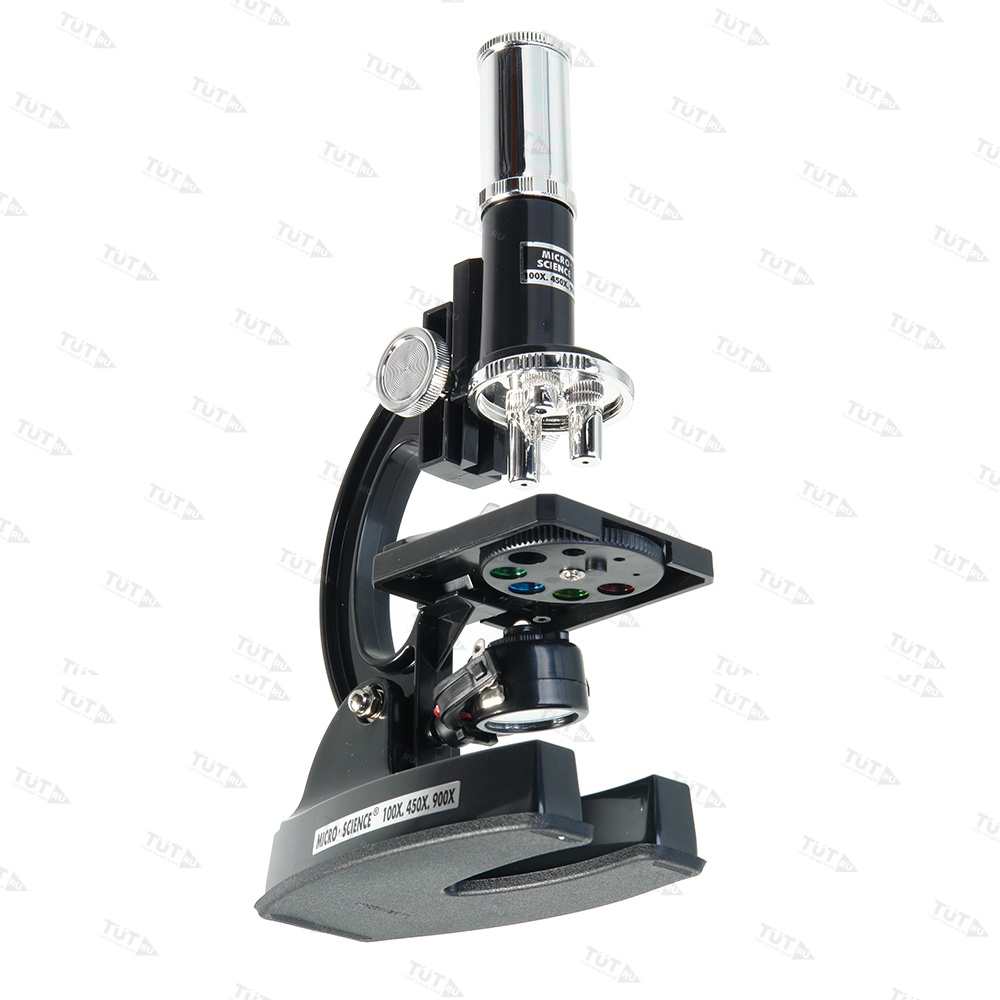 Подсвечивание объекта осуществляется при помощи осветительной лампы (питание от батареи, в комплект не входит), когда она повернута вверх. Это положение лампы используется, если в комнате недостаточное освещение для рассматривания объекта. Подсвечивание объекта также может осуществляться при помощи отраженного от зеркала света в микроскоп в том случае, если в комнате достаточно яркая освещенность.