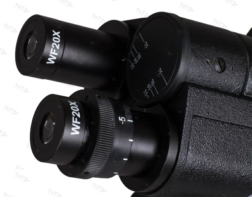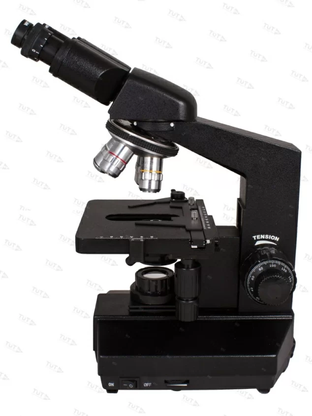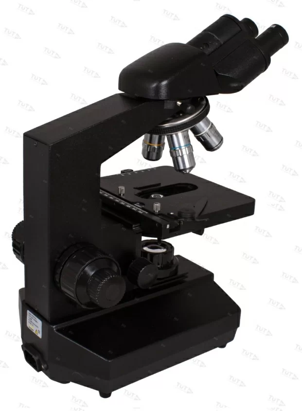 Levenhuk 850B – бинокулярный биологический микроскоп, с помощью которого можно вести наблюдения в светлом поле. Применяется в медучреждениях разного типа для урологических, дерматологических, биологических, биохимических, патологоанатомических, цитологических, гематологических и общеклинических лабораторных исследований. Оснащен поворотной (360º) бинокулярной насадкой, с углом наклона в 30º. 4 объектива легко установить в рабочее положение с помощью револьверного механизма. Классический (по Келеру) тип освещения имеет возможность регулировки апертурной и полевой диафрагм. Фокусировка микроскопа Levenhuk 850B производится за счет винтов грубой и точной настройки резкости. Рукоятки фокусировки позволяют перемещать предметный столик в вертикальной плоскости для точного наведения микроскопа, который остается неподвижным. Также столик можно передвигать и в горизонтальном направлении. Общий размер столика - 140x155 мм. Благодаря мягкому ходу фокусировки и механизма перемещения столика все настройки происходят плавно, без рывков. Фокусировка имеет следующие шаги: грубая – 25 мм, точная – 0,002 мм. Микроскоп оснащен встроенной галогенной лампой 6 В/20 Вт, яркость которой можно регулировать. Оптические элементы имеют полное многослойное просветление. Особенностью данной модели является возможность проводить наблюдения в темном поле. Этот метод подходит, в частности, для гематологических исследований. Встроенный конденсор темного поля можно использовать, когда конденсор Аббе поднят вверх. Чтобы начать наблюдения в темном поле, следует повернуть кольцо осветителя против часовой стрелки, а для возврата в светлое поле кольцо нужно повернуть по часовой стрелке. Основные особенности: Бинокулярная поворотная насадка Диапазон увеличений: 40–2000 крат Иммерсия Конденсор Аббе и ирисовая диафрагма Предметный столик с координатным перемещением Коаксиальный механизм грубой и точной настройки Галогенная подсветка с регулировкой яркости Питание от сети О методе темного поля: Исследования микропрепаратов методом темного поля позволяют увидеть множество деталей, которые невозможно разглядеть при наблюдениях в светлом поле. При работе в темном поле световые лучи образуют полый конусовидным пучок, апертура которого больше, чем объектив. Лучи, таким образом, не попадают в объектив. Неоднородные структуры препарата рассеивают свет, и этот рассеянный свет формирует изображение. Подсветка работает от сети, в комплект входит шнур питания 220 В. Внимание! Помните, что напряжение сети в России и большинстве европейских стран составляет 220-240 В. Если вы хотите использовать устройство в стране с другим стандартом сетевого напряжения, необходимо включать его в розетку только через соответствующий конвертер (преобразователь напряжения). Это можно увидеть под микроскопом: На фото представлены слайды из наборов готовых микропрепаратов Levenhuk. Микроскоп Levenhuk 850B совместим с цифровыми камерами Levenhuk (камеры приобретаются отдельно). Камеры Levenhuk устанавливаются в окулярную трубку вместо окуляра. В комплекте с микроскопом идут два аксессуара для подключения цифровой камеры: удлинительная втулка и втулка–фокусер. Их рекомендуем использовать с короткофокусными объективами для лучшей фокусировки. КОМПЛЕКТАЦИЯ Стойка микроскопа с основанием и бинокулярной наса