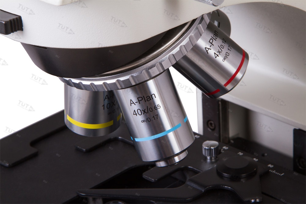 - Планахроматические объективы: 4х, 10х, 20х, 40xs, 100хs (масляный)