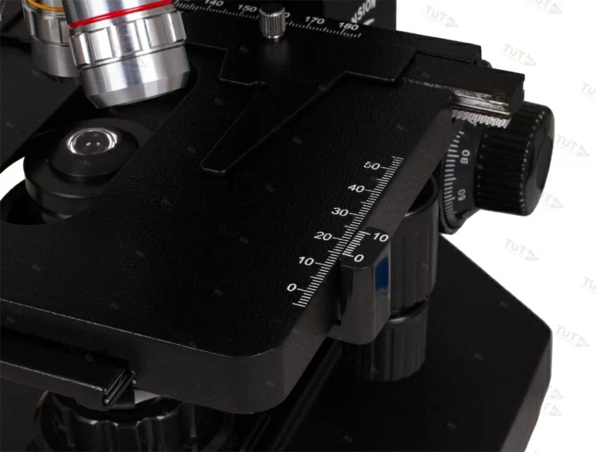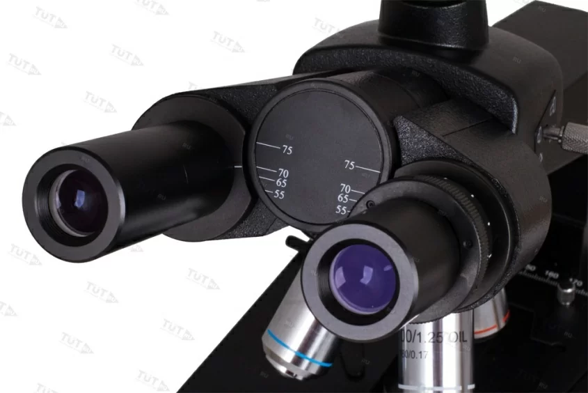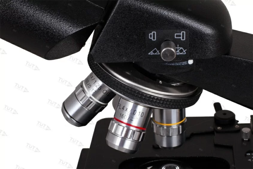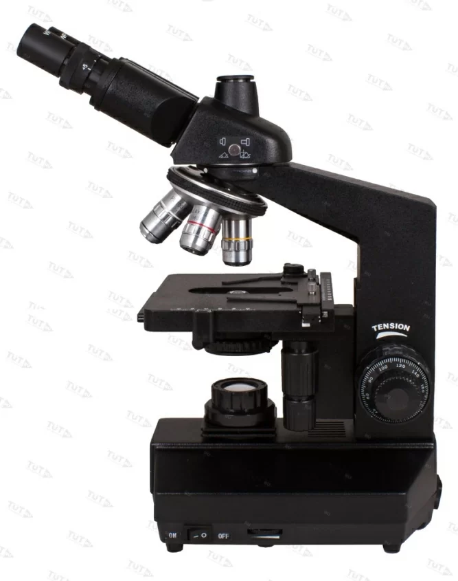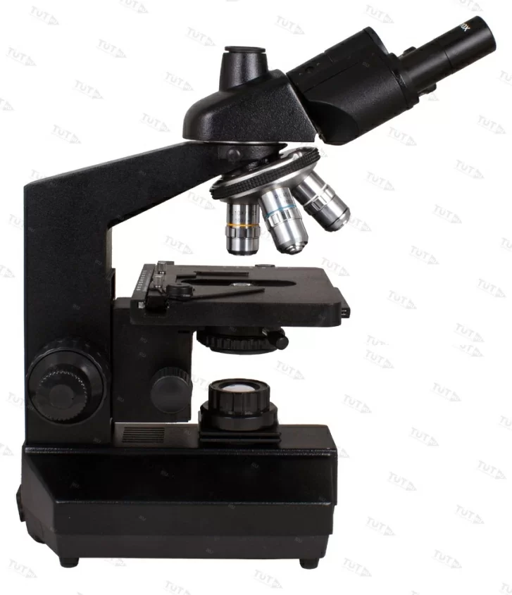 Levenhuk 870T — надежный тринокулярный биологический микроскоп, с помощью которого производится весь спектр наблюдений в светлом поле. Широко используется в медучреждениях разного типа для урологических, дерматологических, биологических, биохимических, патологоанатомических, цитологических, гематологических и общеклинических лабораторных исследований. А поскольку это тринокуляр, то в комплекте с камерой-окуляром его можно без проблем использовать в качестве цифрового микроскопа. Levenhuk 870T оснащен поворотной (360°) тринокулярной насадкой, с углом наклона в 30°. Четыре объектива в револьверном устройстве, классический (по Келеру) тип освещения, возможность регулировки апертурной и полевой диафрагм делают этот микроскоп превосходным инструментом для серьезных наблюдений. Фокусировка микроскопа Levenhuk 870T производится за счет винтов грубой и точной настройки резкости. Рукоятки фокусировки позволяют перемещать предметный столик в вертикальной плоскости для точного наведения резкости, объектив же остается неподвижным. Также столик перемещается и в горизонтальном направлении, так как он двухкоординатный. Размеры столика 140х155 мм. Благодаря мягкому движению фокусировки и механизма перемещения столика все настройки меняются плавно, без рывков. Фокусировка имеет следующие шаги: грубая — 25 мм, точная — 0,002 мм Микроскоп оснащен встроенной галогенной лампой (6 В/20 Вт) с опцией регулировки яркости. Оптика имеет полное многослойное просветление. Особенностью данной модели является возможность проводить наблюдения в темном поле. Этот метод подходит, в частности, для гематологических исследований. Встроенный конденсор темного поля можно использовать, когда конденсор Аббе поднят вверх. Чтобы начать наблюдения в темном поле, следует повернуть кольцо осветителя против часовой стрелки, а для возврата в светлое поле кольцо нужно повернуть по часовой стрелке. Основные особенности: Тринокулярная поворотная насадка Диапазон увеличений: 40–2000 крат Иммерсия Конденсор Аббе и ирисовая диафрагма Предметный столик с координатным перемещением Коаксиальный механизм грубой и точной настройки Галогенная подсветка с регулировкой яркости Питание от сети О методе темного поля: Исследования микропрепаратов методом темного поля позволяют увидеть множество деталей, которые невозможно разглядеть при наблюдениях в светлом поле. При работе в темном поле световые лучи образуют полый конусовидным пучок, апертура которого больше, чем объектив. Лучи, таким образом, не попадают в объектив. Неоднородные структуры препарата рассеивают свет, и этот рассеянный свет формирует изображение. Подсветка работает от сети, в комплект входит шнур питания 220 В. Внимание! Помните, что напряжение сети в России и большинстве европейских стран составляет 220-240 В. Если вы хотите использовать устройство в стране с другим стандартом сетевого напряжения, необходимо включать его в розетку только через соответствующий конвертер (преобразователь напряжения). Это можно увидеть под микроскопом: На фото представлены слайды из наборов готовых микропрепаратов Levenhuk. Микроскоп Levenhuk 870T совместим с цифровыми камерами Levenhuk (камеры приобретаются отдельно). Камеры Levenhuk устанавливаются в окулярную трубку вместо окуляра. В комплекте с микроскопом идут два аксессуара для подключения циф