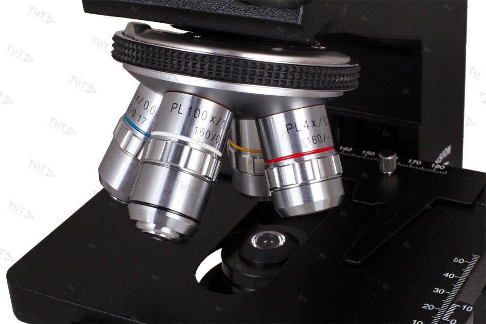Объективы: 4x, 10x, 40x, 100x (масляный)