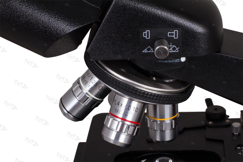 Levenhuk 870T оснащен поворотной (360°) тринокулярной