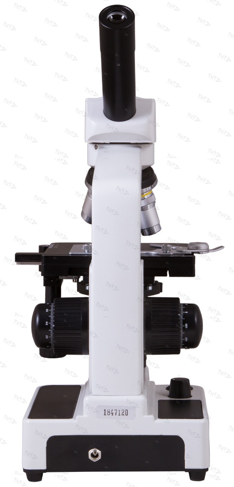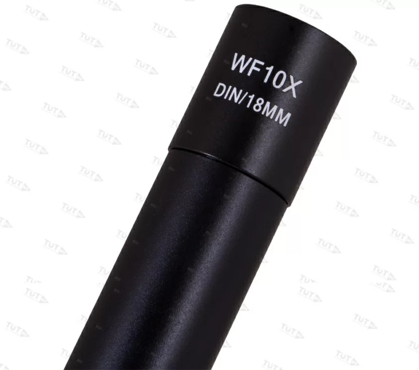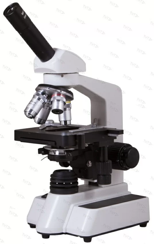 Оптическая система микроскопа состоит из монокулярной поворотной на 360° насадки и револьверного устройства на 4 объектива. В комплект поставки включены: окуляр 10х и объективы 4х, 10х, 40х и 60х. Все объективы ахроматические, поэтому оптика минимизирует аберрации и выравнивает поле зрения.