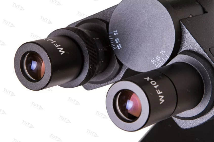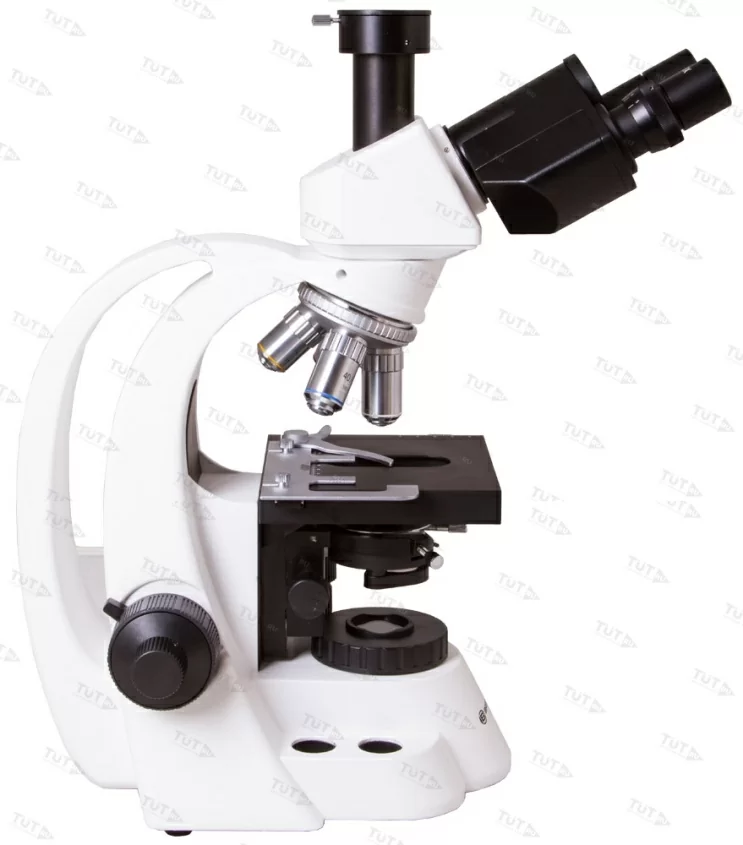 Микроскоп оборудован револьверным устройством на 4 объектива, обеспечивающим быструю смену увеличений во время исследований. В разных сочетаниях входящие в комплект окуляры и объективы позволяют получать увеличения в диапазоне от 40 до 1000 крат.