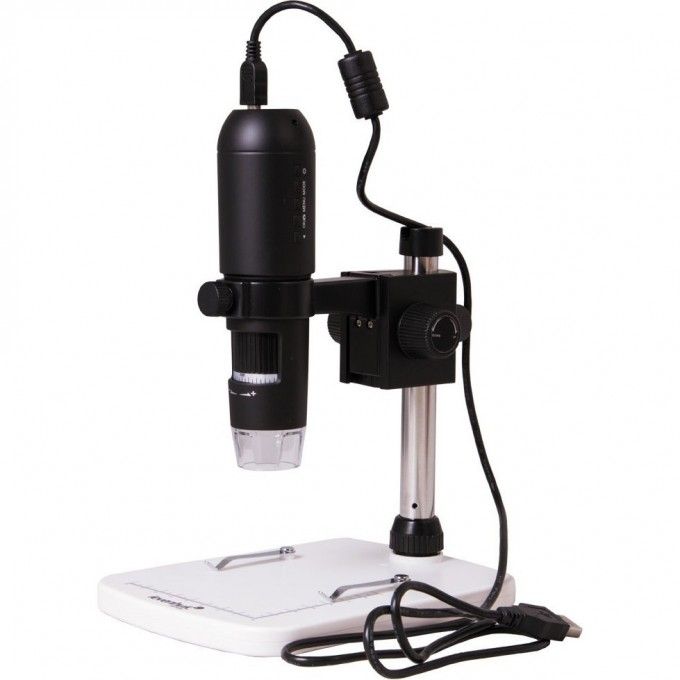 Микроскоп Levenhuk DTX TV – цифровой увеличительный прибор, который может выводить изображение на экран компьютера или телевизор. В комплекте идут USB и HDMI-кабели – вы можете выбрать наиболее удобный для вас вид подключения. В режиме реального времени микроскоп передает картинку с объектива на любой внешний экран. Levenhuk DTX TV – отличный выбор для учебы, хобби и работы. Микроскоп комплектуется штативом. Фиксируя микроскоп на нем, можно получить более четкие изображения. В нижней части штатива расположен предметный столик с металлическими препаратодержателями и измерительной шкалой. 3-мегапиксельная камера позволяет снимать высокодетализированные фотографии и видео в режиме FullHD. Для доступа ко всем возможностям камеры используйте специальную программу, диск с которой есть в комплекте. Она позволит вам обрабатывать снимки: изменять размер, регулировать контрастность и яркость, проводить линейные и угловые измерения образцов. Для работы в условиях плохой освещенности микроскоп снабжен светодиодной подсветкой. Для ее питания не требуется батарейки – зарядка микроскопа идет через USB-кабель или сетевой адаптер прямо во время работы. Особенности: Цифровой микроскоп с 3-мегапиксельной камерой Возможность подключения к компьютеру и телевизору Надежный штатив с предметным столиком Яркая светодиодная подсветка Возможность записи фото и видео Совместимость с ОС Windows и Mac Программное обеспечение в комплекте Рекомендации по работе с ПО: особенностью программы PortableCapture (и других ее версий) является то, что для корректной работы необходимо запускать установленную программу только тогда, когда микроскоп подключен к ПК и приведен в рабочее состояние. Внимание! Помните, что напряжение сети в России и большинстве европейских стран составляет 220–240 В. Если вы хотите использовать устройство в стране с другим стандартом сетевого напряжения, необходимо включать его в розетку только через соответствующий конвертер (преобразователь напряжения). Микроскоп Levenhuk DTX TV несовместим с внешними цифровыми камерами. КОМПЛЕКТАЦИЯ Цифровой микроскоп Штатив Сетевой адаптер USB-кабель HDMI-кабель Шкала калибровки Компакт-диск с программным обеспечением Инструкция по эксплуатации
