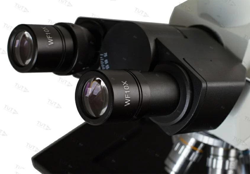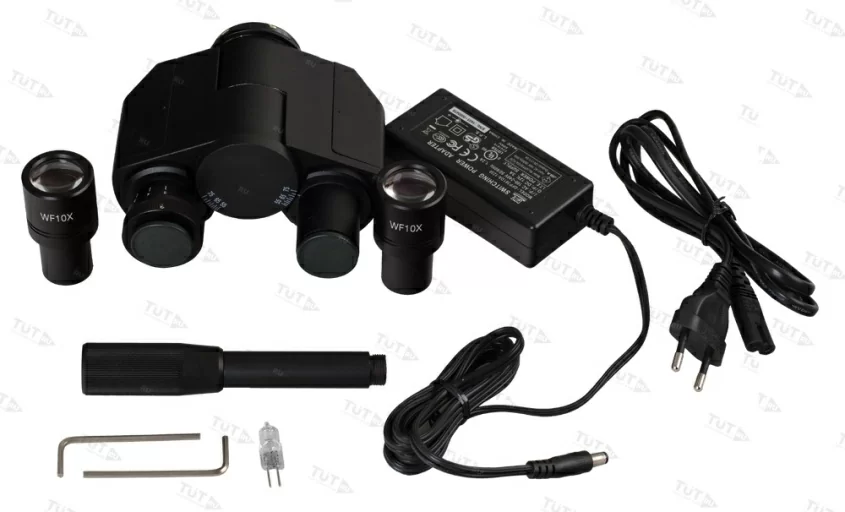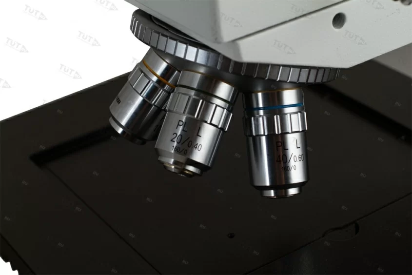 В комплект входят 5 объективов, которые дают увеличения в диапазоне от 50 до 800 крат. 5-гнездное револьверное устройство позволяет оперативно выбирать нужное увеличение, не отрываясь от работы. Тринокулярная насадка обеспечивает удобную работу с микроскопом и возможность фиксировать результаты исследований (требуется подключение камеры, в комплект не входят).