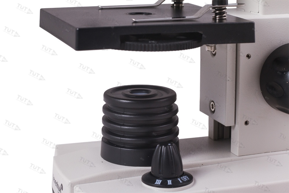 Препарат помещается на предметный столик и надежно фиксируется на нем