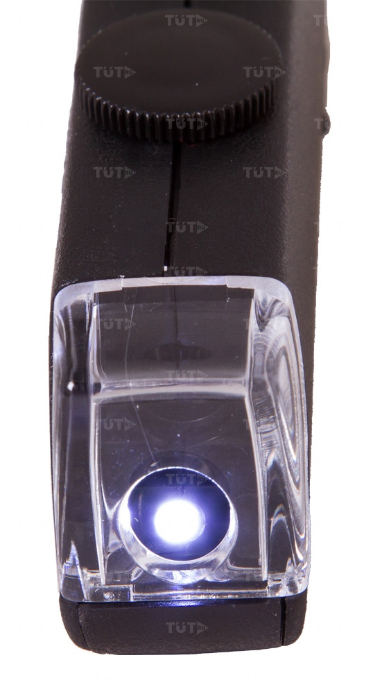 Оптика микроскопа обеспечивает увеличение 60-100х. Благодаря встроенной подсветке пользоваться этим карманным микроскопом можно даже в условиях плохой освещенности. Использование светодиодов в системе подсветки позволило увеличить срок службы батареек; кроме того, светодиоды, в отличие от ламп накаливания, не перегорают от тряски и ударов.