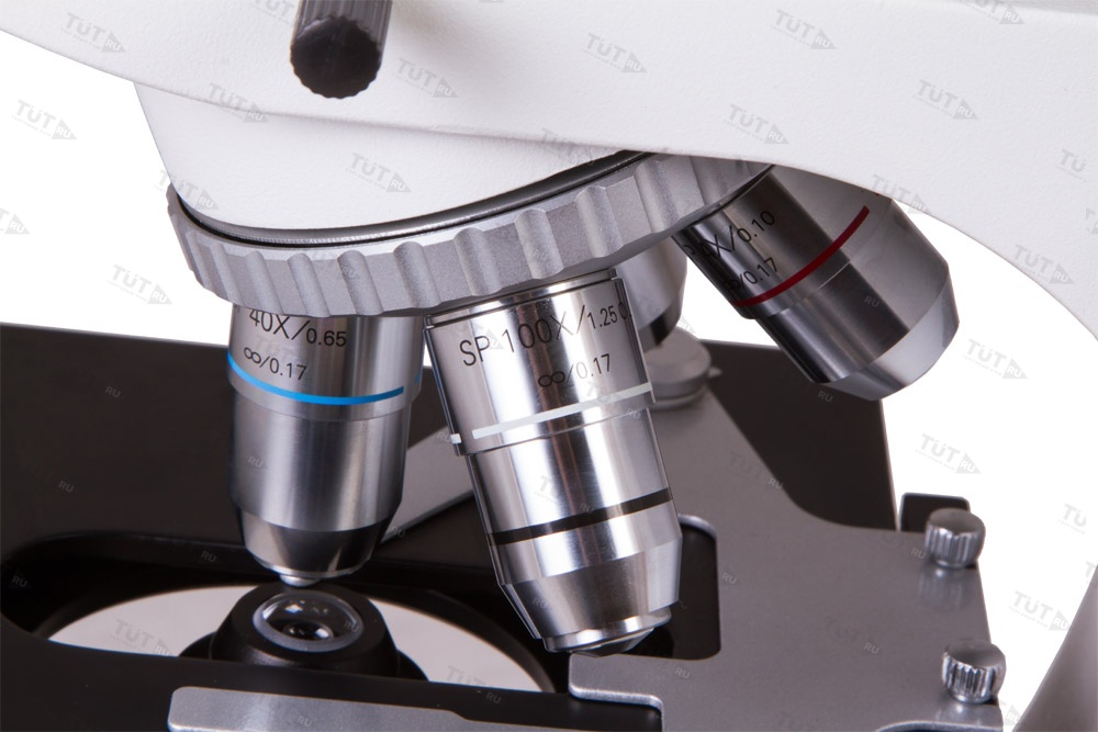 - Полупланахроматические объективы: 4х, 10х, 40xs, 100хs (масляный)