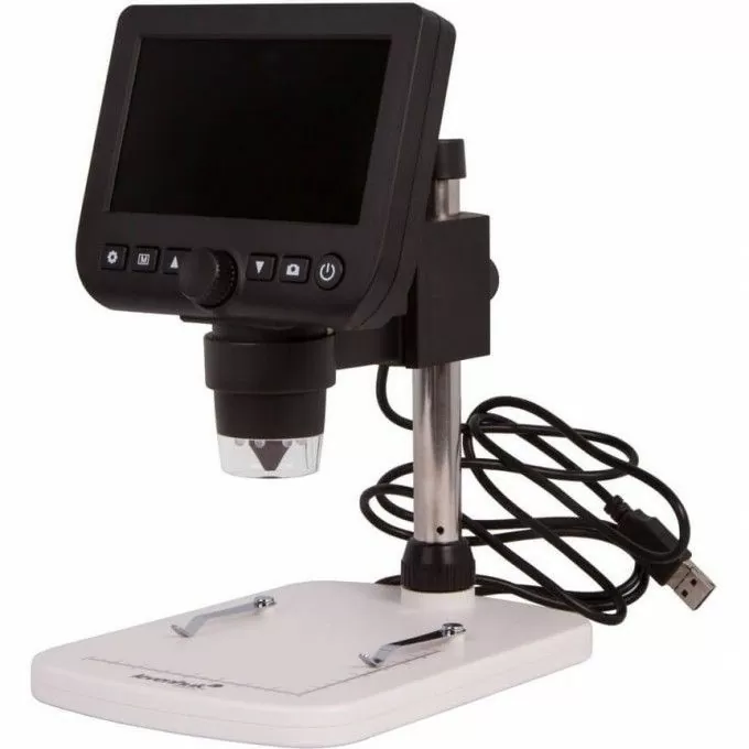 Основная особенность микроскопа – цифровая камера 0,3 Мпикс. Она формирует картинку и выводит ее на встроенный или внешний экран в режиме реального времени. Диагональ встроенного ЖК-экрана составляет 4,3 дюйма, к внешним мониторам и телевизорам микроскоп подключается при помощи комплектного USB-кабеля.