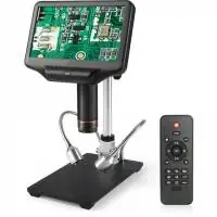 Для управления микроскопом можно использовать кнопки на корпусе или беспроводной пульт. В пульт заложено много функций, поэтому работать с прибором удобно даже на удалении от него. С пульта можно регулировать яркость подсветки, настраивать увеличение, запускать запись видео, делать фотоснимки и многое другое.