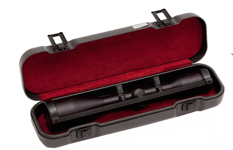 Защищает прицел от повреждений и удобен при транспортировке. Внешние и внутренние части футляра отливаются из пластика марки ABS и соединяются посредством специальной технологии ультразвуковой сварки. Основные свойства материала ABS – ударопрочность и отсутствие усыхания в отличие от дерева. Внешняя и внутренняя часть корпуса футляра пластик. Внутренняя обивка выполнена из акриловой ткани. Все материалы, используемые в производстве футляров не подвержены коррозии, не испаряют вредные вещества и не меняют своих свойств и размеров в зависимости от температуры.