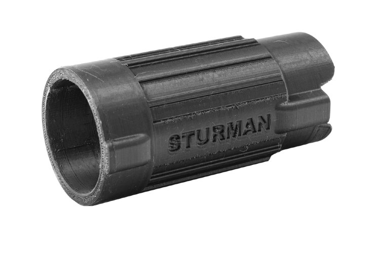 Назначение Бленда , установленная на объектив, защищает от бликования и предотвращает снижение чёткости изображения при эксплуатации цифрового прицела PARD-008P/008P-LRF на ярком солнце. Быстро и надёжно фиксируется на объективе прибора без каких-либо инструментов, а эргономичная форма упрощает фокусировку — рельефная поверхность бленды обеспечивает удобных захват во время вращения. Технические параметры Материал изделия — PETG (модифицированный полиэтилентерефталат). Нетоксичный, экологичный пластик с хорошими прочностными характеристиками и высокой стойкостью к УФ излучению. Более долговечный, чем ABS или PLA, химически устойчив к большинству бытовых растворителей. Технология производства FDM (Fused Deposition Modeling) 3D-печать. Температура эксплуатации изделия — -40...+60°C. Габариты 44х92х46, вес 60 грамм. Цвет чёрный. Бленда Sturman (PETG) предназначена для моделей PARD-008P/008P-LRF с оригинальным креплением PARD. Прицел должен быть установлен на кронштейн не далее крайнего к прикладу отверстия. Производитель может вносить изменения в комплектацию, конструкцию и/или программное обеспечение прибора без предварительного уведомления пользователей