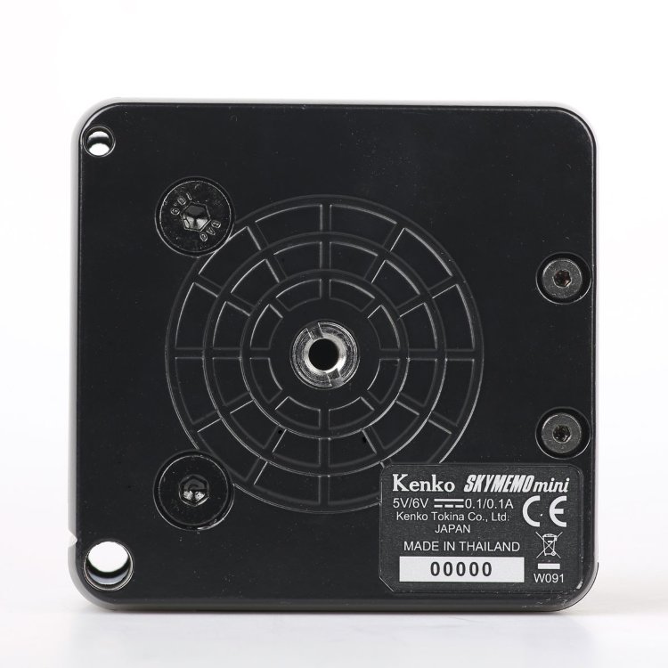 Назначение Kenko SKYMEMO mini — портативный трекер для интервальной (покадровой) фотосъёмки наземных целей и автоматического гидирования объектов звёздного неба по экваториальной плоскости. Можно установить практически на любой прочный и жёсткий фотоштатив, в том числе с обычной или поворотно-наклонной видеоголовкой. Максимальный суммарный вес «навесной» фото и видеоаппаратуры — 5 кг. Ключевые параметры 2 режима работы: автогидирование, интервальная съёмка. Поворот 5°...360° (с шагом 5°), настройка скорости вращения. Выравнивание по Полярной звезде. Внешний LCD дисплей. Крепление 1⁄4'' для присоединения фото-/видеоаппаратуры. Устанавливается на штатив с резьбой 1/4... 3/8'' (с адаптером). Питание от 4 батареек типа AA. До 20 ч работы. Порт microUSB. Компактный корпус 84x86x65 мм, вес 630 г. Максимальная нагрузка — 5 кг. Особенности конструкции и примененияМногофункциональность. Прибор подходит для интервальной наземной фотосъёмки с длительной выдержкой и эффектом панорамирования, может использоваться для самостоятельное устройство для автоматического гидирования при занятиях астрофотографией. Доступный функционал: несколько режимов слежения (звёздный, лунный, солнечный, северное/южное полушарие), установка направления (влево, вправо, циклично с шагом 5 град.) и скорости вращения площадки (от 48 часов до 15 минут). Текущий режим работы, функции и предварительные настройки легко отслеживаются на встроенном ЖК-дисплее. Выравнивание по Полярной звезде. В корпусе два отверстия для самостоятельного наведения устройства по Полярной звезде: большое (Ø7 мм) — для первоначальной (грубой) настройки, малое (Ø4 мм) — для последующей тонкой калибровки. Для максимально простого и точного наведения на полярную ось рекомендуется использовать SKYMEMO mini совместно с экваториальным клином SKYMEMO Pinpoint Wedge (клин приобретается отдельно). Питание от батареек или внешнего ИП. Устройство работает от 4-х батареек АА (не входят в комплект поставки); полного заряда хватает на 20 часов непрерывной работы. Чтобы продлить время эксплуатации, например, при длительном гидировании, к прибору через microUSB-разъём на корпусе можно подключить внешний источник питания типа Power Bank. Батарейки устанавливаются в батарейный отсек независимо от выбранного способа питания. Грузоподъёмность до 5 кг. Можно установить даже цифровую зеркальную камеру со светосильным телеобъективом с фокусным расстоянием 300 мм / 400 мм. Компактность. Установка на стандартный штатив. Корпус специально сделан с минимальным количеством выступов и скруглённым углами, чтобы минимизировать место для хранения и упростить переноску. За счёт небольших размеров и веса (640 г) Kenko SKYMEMO mini легко умещается в багаж или ручную кладь. Крепление на штатив либо типовое (резьба 1⁄4 дюйма) либо реже встречающееся 3/8 дюйма (потребуется адаптер); для фото/видеоаппаратуры предназначено верхнее крепление 1⁄4 дюйма. Технические параметры Гидирование Режим слежения Луна; Солнце; звёздное небо (скорость 0,5x); южное / северное полушарие Интервальная съёмка Режим вращение влево-вправо; циклическое вращение (угол 5...360 град. с шагом 5 град.) Скорость непрерывного вращения (продолжительность 1 оборота), час 48 24 12 6 1,5 1 30 мин 15 мин Питание Тип 4xAA Время работы, ч 20 Внешнее питание micro USB Физические и эксплуатационные параметры Дисплей LCD Крепление под аппаратуру, дюйм 1/4 К