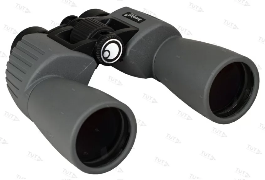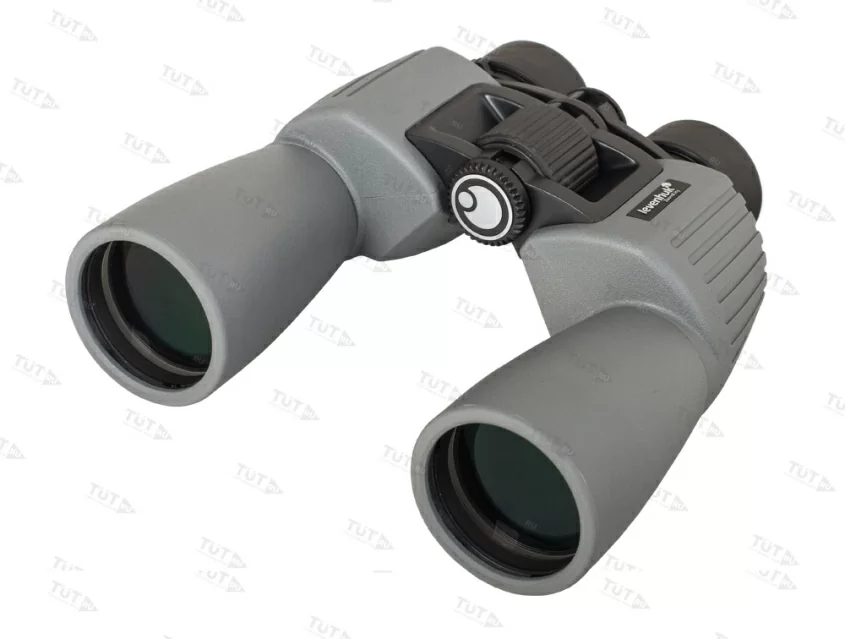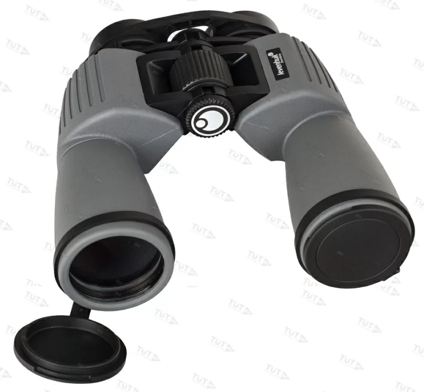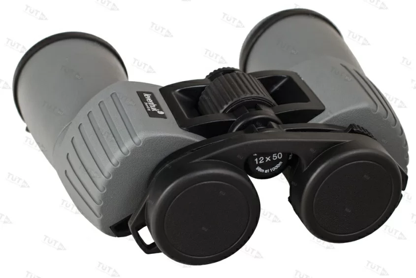 Корпус полностью герметичен, он не пропускает пыль, грязь и влагу. Благодаря водонепроницаемой конструкции бинокль можно использовать при любой погоде. Корпус покрыт рельефной светло-серой резиновой оболочкой – она защищает прибор от ударов и обеспечивает надежный захват. Для длительных наблюдений бинокль лучше установить на штатив – на корпусе есть специально крепежное гнездо.
