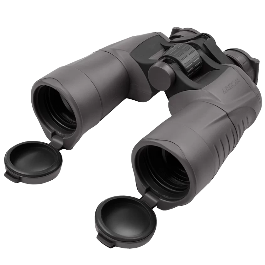 Arkon 12х50 – средняя модель новой линейки биноклей российского бренда Arkon Technologies. Постоянный уровень увеличения 20 крат при световых диаметрах объективов 50 мм считается оптимальным решением для наблюдений с рук на открытых пространствах. Оптическая схема на призмах Porro (Порро) предоставляет более объемное изображение, чем аналоги на РУФ призмах. Качественная оптика на премиальных стеклах марки ВАК-4 обеспечит максимально реалистичную цветопередачу, а большой диаметр объективов возможность ведения наблюдений даже при слабом, сумеречном освещении. Внушительный угол обзора (70 м/1000 м) позволяет с комфортом применять оптику в самых разнообразных сценариях, начиная от любительского использования в туристических походах и загородных поездках, заканчивая профессиональным применением при проведении поисково-спасательных миссий или на охоте. Корпус Arkon 16х50 изготовлен из полиамидных материалов, имеет мощное прорезиненное покрытие, защищающее оптику в процессе ее эксплуатации. В бинокле применена уникальная система крепления крышек окуляров и объективов с защитой от утери.