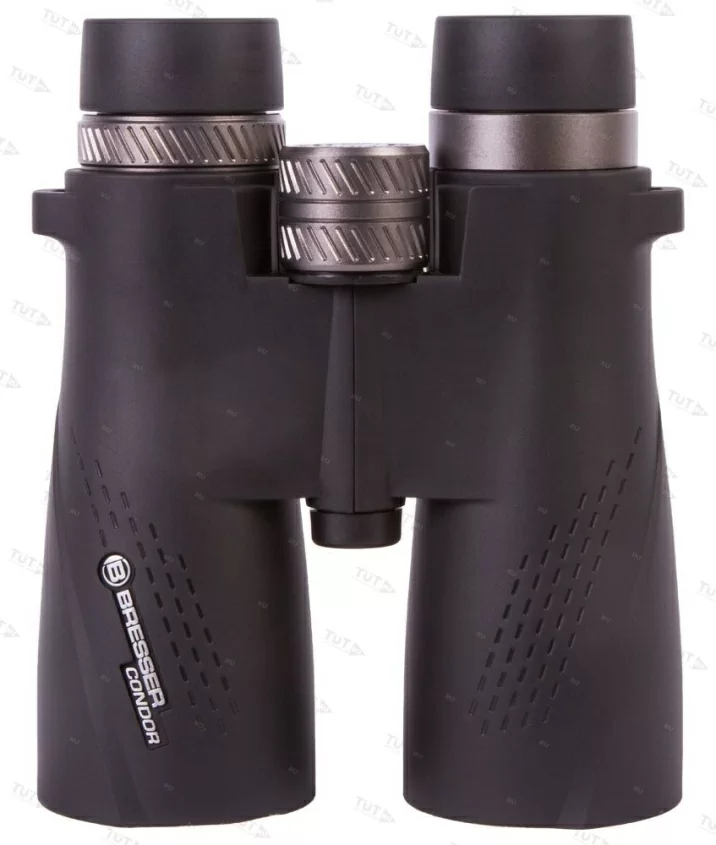 Bresser Condor UR 10x50 можно устанавливать на штатив. Кроме того, в бинокле можно настраивать диоптрии на правом окуляре, регулировать расстояние между зрачками, выбирать максимально удобное положение поворотно-выдвижных наглазников. Резкость настраивается при помощи центрального барабана фокусировки.