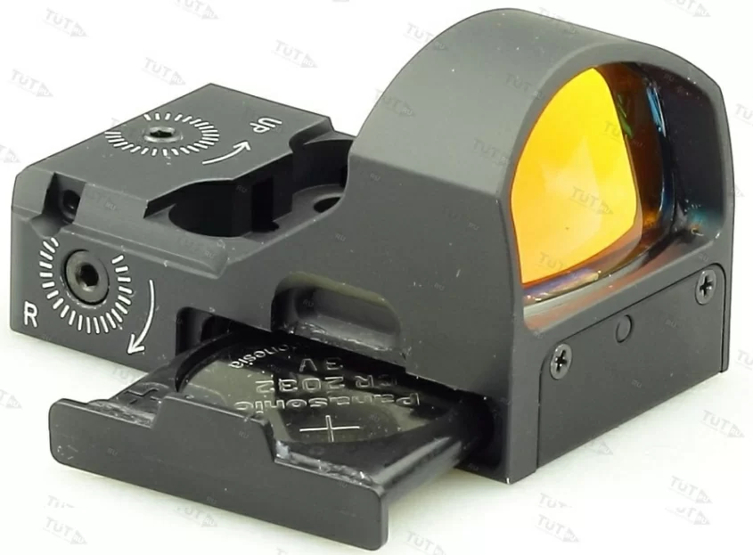 В качестве элемента питания используется распространенная батарея типоразмера CR2032, емкости которой хватит на длительное время работы. Продлить автономное время работы поможет автоматическая регулировка светимости прицельной марки, ориентирующаяся на общий уровень освещенности, например, при переходе из ярко освещенного участка в помещение. Диаметр передней линзы в 24 мм захватывает приличную область пространства и позволяет вести беглый огонь, даже по движущимся с высокой скоростью целям. Коллиматору не страшны удары о ветви деревьев и элементы экипировки, падения в грязь, воду и снег.