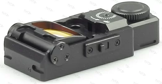 Компактность прицела привела к уменьшению винтов поправок, положение которых меняется шестигранником. Запас хода прицельной марки на расстоянии в 100 метров составляет 330 с (110 МОА), при шаге 2,3 см на сотню (0,8 МОА).