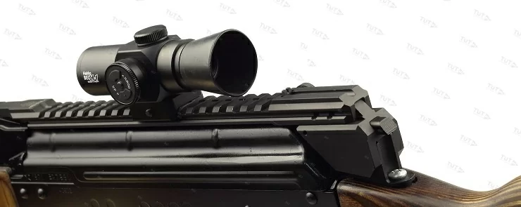 Классическое решение для коллиматорных прицелов Hakko – встроенное крепление типа Weaver, позволяющее установку на большинство моделей оружия. В модели H-1 крепление достаточно узкое и расположено практически по центру, что улучшает вариативность установки.