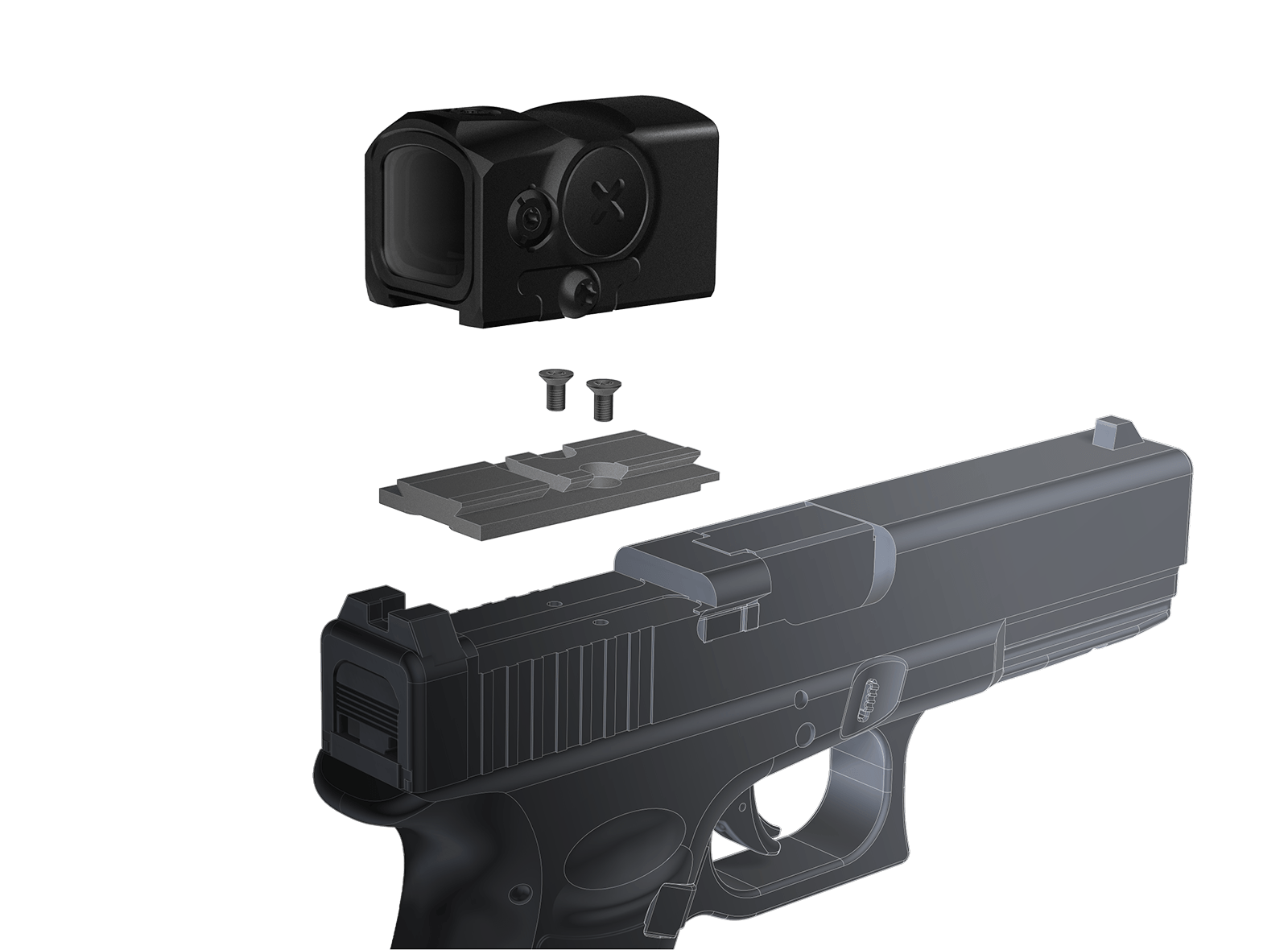 - оптимизирован для пистолетов, где необходим легкое, низкопрофильное прицельное приспособление