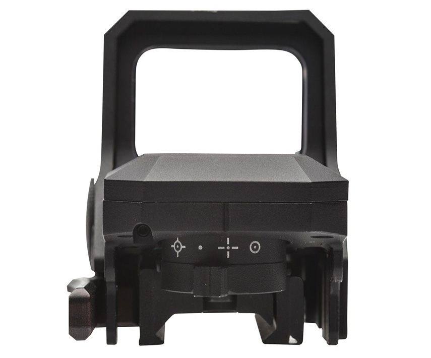 Ввод поправок в положение прицельной марки происходит за счет маховиков со шлицевым интерфейсом под монету, нож или отвертку. Тип прицельных марок: точка 5 МОА; точка 3 МОА с кругом 50 МОА; точка 3 МОА с перекрестием 50 МОА; точка 3 МОА с кругом и перекрестием 50 МОА.
