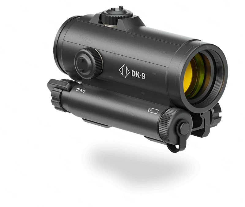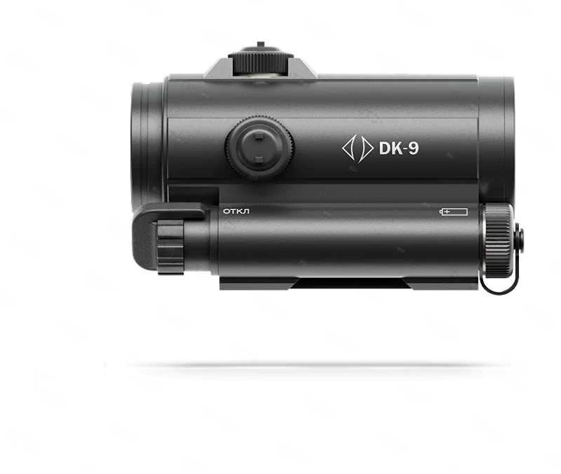 Коллиматорный прицел DK-9 позволяет осуществлять быстрое и точное прицеливание, в том числе из неудобных положений, так как наблюдение выполняется двумя глазами.