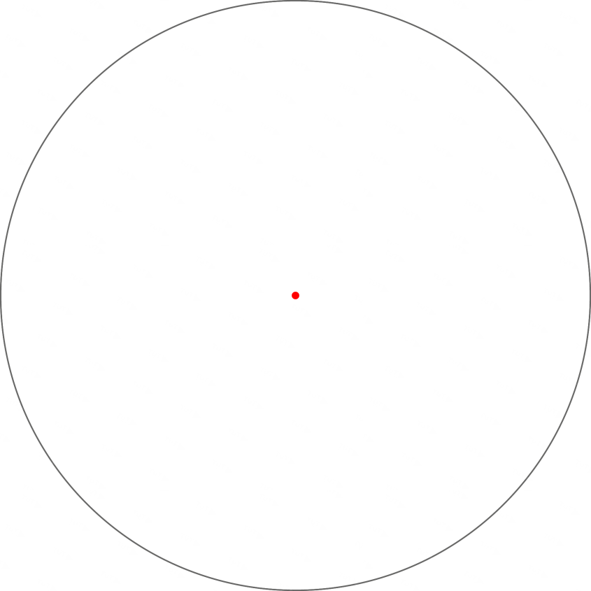 Прицельная марка выполнена в виде красной точки размером 2 МОА (6 см/100 м). Исследования показали, что такой размер точки обеспечивает оптимальное соотношение скорости прицеливания и точности.