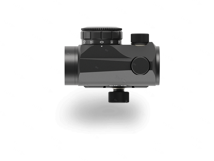 Яркость красной точки регулируется дискретно поворотным выключателем (11 позиций). Первые две позиции тумблера предназначены для работы прицела с прибором ночного видения.