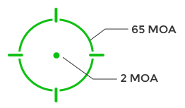 - Система Multi-Reticle System™ (MRS), прицельные марки, круг 65 МОА, точка 2 МОА, круг-точка;