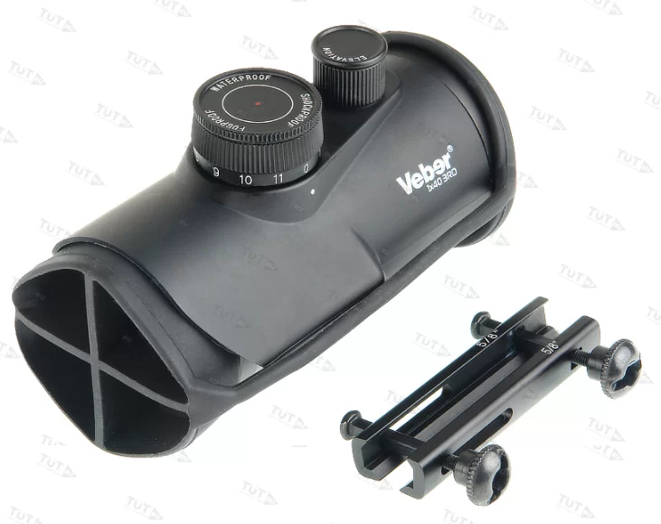 В комплект входит адаптер для установки прицела на планку «ласточкин хвост» 11 мм с плоской поверхностью и на планки шириной 21 мм.
