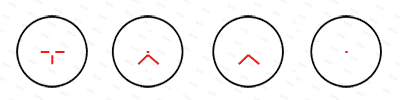 4 прицельных марки, гибкая подстройка яркости. Прицельная метка не видна со стороны (не демаскирует стрелка), а её внешний вид подстраивается под цели и условия стрельбы. Доступно 4 конфигурации: «точка» 2 MOA, «пика» (аналог механического прицела), «точка с пикой» и «Т-образная». Яркость регулируется вручную — от 1 (еле заметное свечение, пригодится в сумерках) до 16 (свечение на максимуме, подходит для дневных охот). Уровень яркости и тип сетки сохраняются и автоматически восстанавливаются при каждом включении.