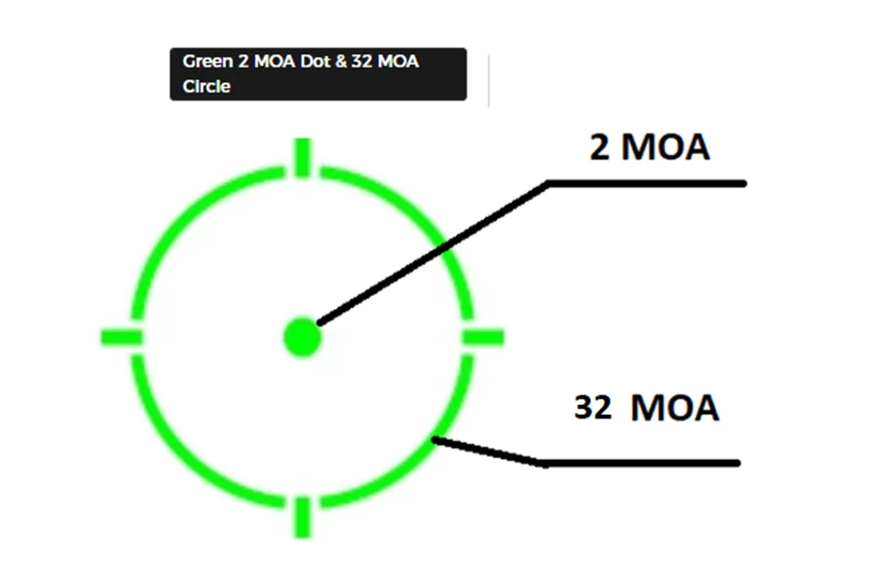 Система Multi-Reticle System™ (MRS), прицельные марки, круг 32 МОА, точка 2 МОА, круг-точка.