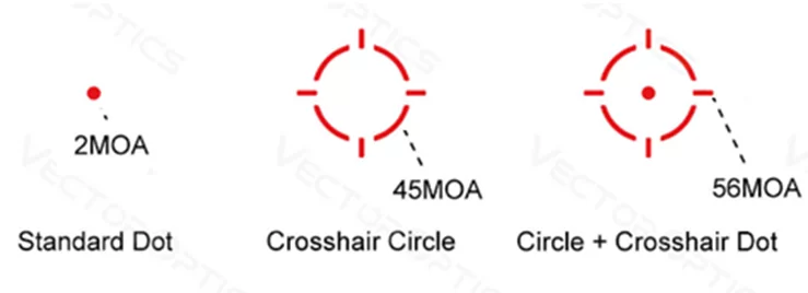 Три прицельные марки: «Точка» 2 МОА, «Круг с перекрестием» и совмещенный вариант