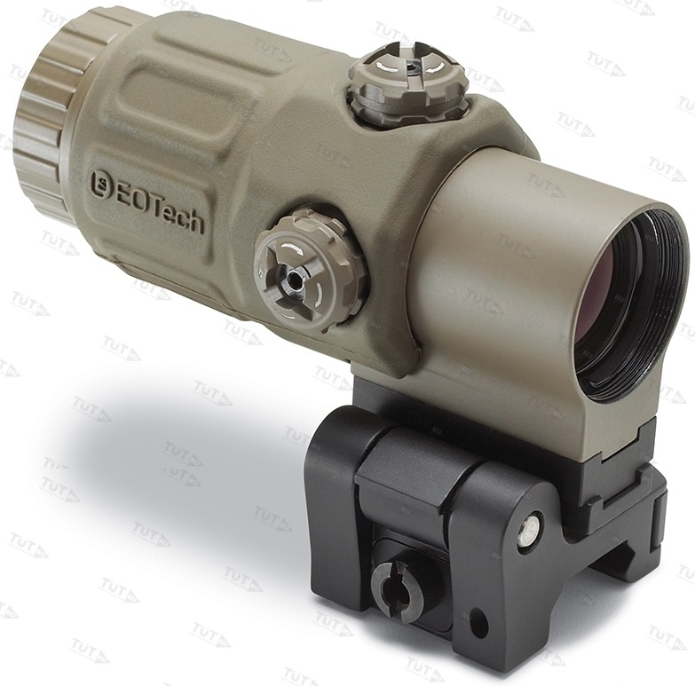 EOTech G33.STS 3x Magnifier - так-называемый "увеличитель", представляющий собой отдельный оптический узел, который устанавливается перед голографическим прицелом и позволяет получить 3-х кратное увеличение. Увеличитель поставляется с крепление Switch to Side (STS), которое позволяет мгновенно "откидывать" увеличитель в сторону для прицеливания только через сам прицел. В последней модификации вам нужно потянуть увеличитель в сторону откидывания. Увеличитель EOTech G33.STS совместим со всеми моделями EOTech, однако его использование с моделями, имеющими кнопки управления сзади, не очень удобно. В комплекте с увеличителем вы найдете проставку поднимающую высоту установки прибора. Она нужна для установки на EXPS модели с быстросьемным креплением.
