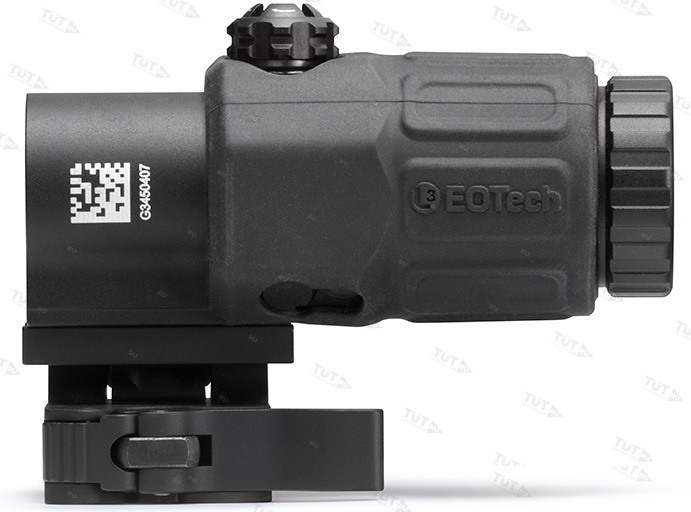 Размещается прибор между коллиматором и глазом стрелка, что бы придать увеличение изображению коллиматорного прицела. Если же необходимости в увеличении нет, достаточно просто убрать насадку в сторону. Увеличитель EOTech G33.STS оснащен так называемым быстросъемным креплением Switch-to-side(STS), которое мгновенно откидывает насадку в сторону, позволяя стрелку использовать только коллиматор.