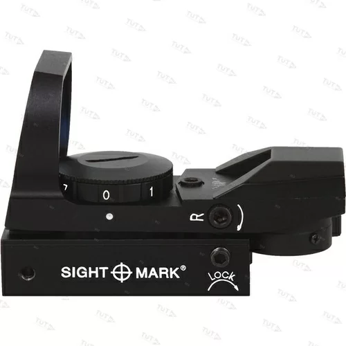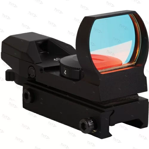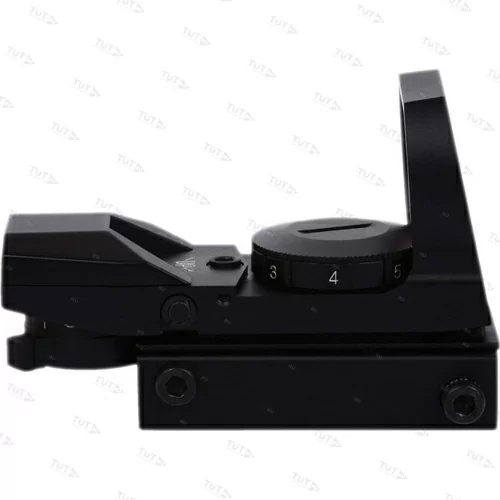 Компактный коллиматорный прицел имеет 4 типа прицельной марки красного цвета. Регулировка яркости прицельной марки осуществляется вручную - на корпусе сверху расположен восьмиступенчатый барабанчик регулировки яркости прицельной марки, который совмещен с батарейным отсеком.