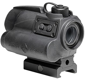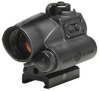 Двумя кнопками, расположенными сбоку на корпусе коллиматора, его можно включить/выключить, отрегулировать степень яркости прицельной марки и переключить в режим совместимости с NV (приборами ночного видения).