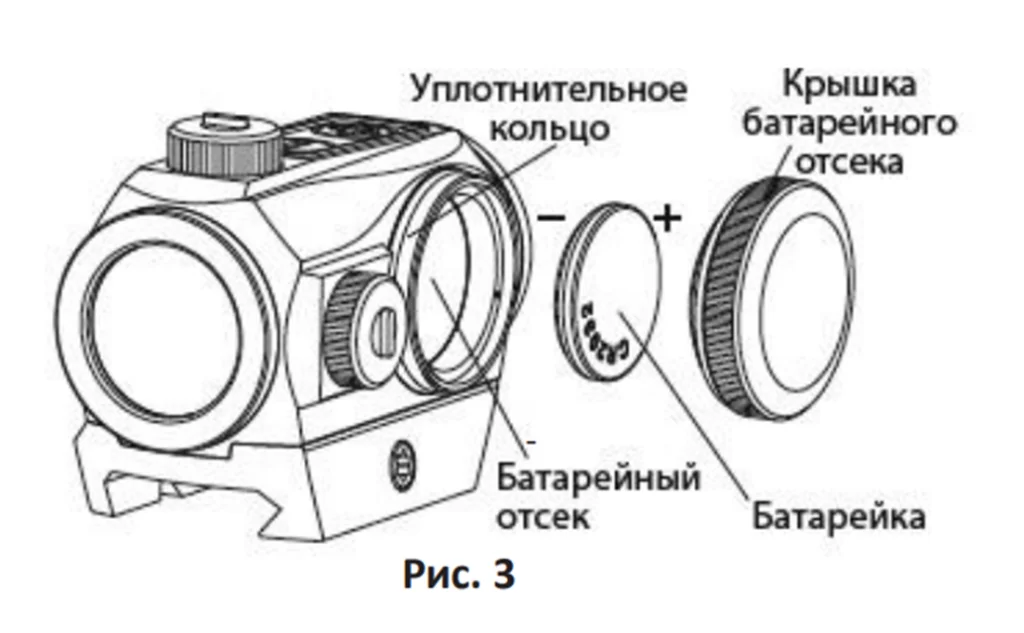 Для работы коллиматора используется батарея CR2032. Лоток для батареи находится на боковой стороне корпуса, что делает ее замену простой. Сам прицел при этом снимать не требуется. Продолжительность работы прицела на полностью заряженном источнике достигает 50 000 часов.