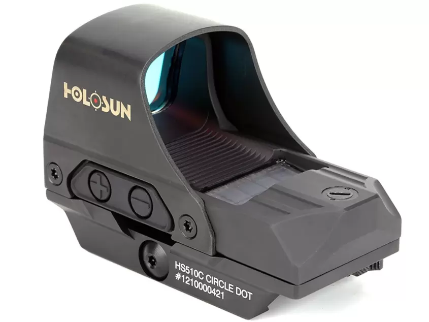 Корпус Holosun Open Reflex HS510C изготовлен из высокопрочного алюминиевого сплава 7075-T6, конструкция водонепроницаема, класс защиты ІРХ7. Защитный капюшон изготовлен из прочнейшего титана. Конструкция обладает коррозионной стойкостью к морской воде. Коллиматор испытан на высокие ударные нагрузки с ускорением 1000g, что свидетельствует о готовности его использования на любом гражданском оружии. В комплекте поставки есть быстросъемное крепление на популярные рельсовые системы Вивера / Пикатинни.