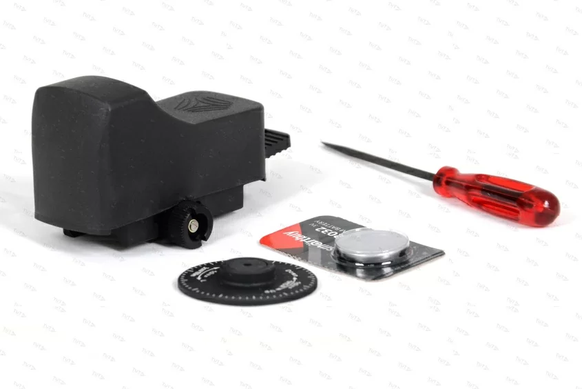 Полностью металлический корпус из высокопрочных алюминиевых сплавов способен обезопасить электронную начинку при интенсивных ударных нагрузках. Просветленная оптика обеспечит яркую картинку цели, как при дневном, так и сумеречном освещении. Диаметр передней линзы всего 19 мм, яркая марка прекрасно видна на поверхности цели. В комплекте имеются пристрелочный лимб и инструменты для адаптации коллиматора на оружии. Шаг выверки 1 МОА на 100 метров. Большой запас хода по вертикали и горизонту позволит пристрелять на любую требуемую дистанцию. Вес всего 130 грамм не нарушает баланс. Интегрированное крепление надежно закрепит коллиматор на планках Вивер или Пикатини. Питание осуществляется от литиевой батареи популярного типоразмера CR2032, полного заряда хватит приблизительно на 70 часов непрерывной эксплуатации. Сменить севший источник питания можно в полевых условиях, не прибегая к услугам специализированных мастерских.