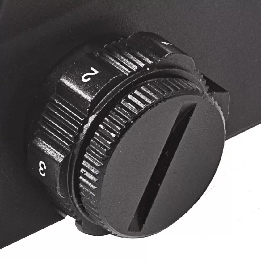 В прицеле Impact XL Reflex предусмотрена возможность прицеливания с выбором из 4-х вариантов визирования с 5 настройками яркости, обеспечивающими максимальные комфорт пользователю. Прицел Impact XL позволяет легко управлять уровнем яркости с помощью цифрового переключателя.